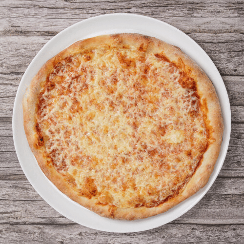 Tomatsauce, ost, skinke, champignon, cocktailpølser og bacon